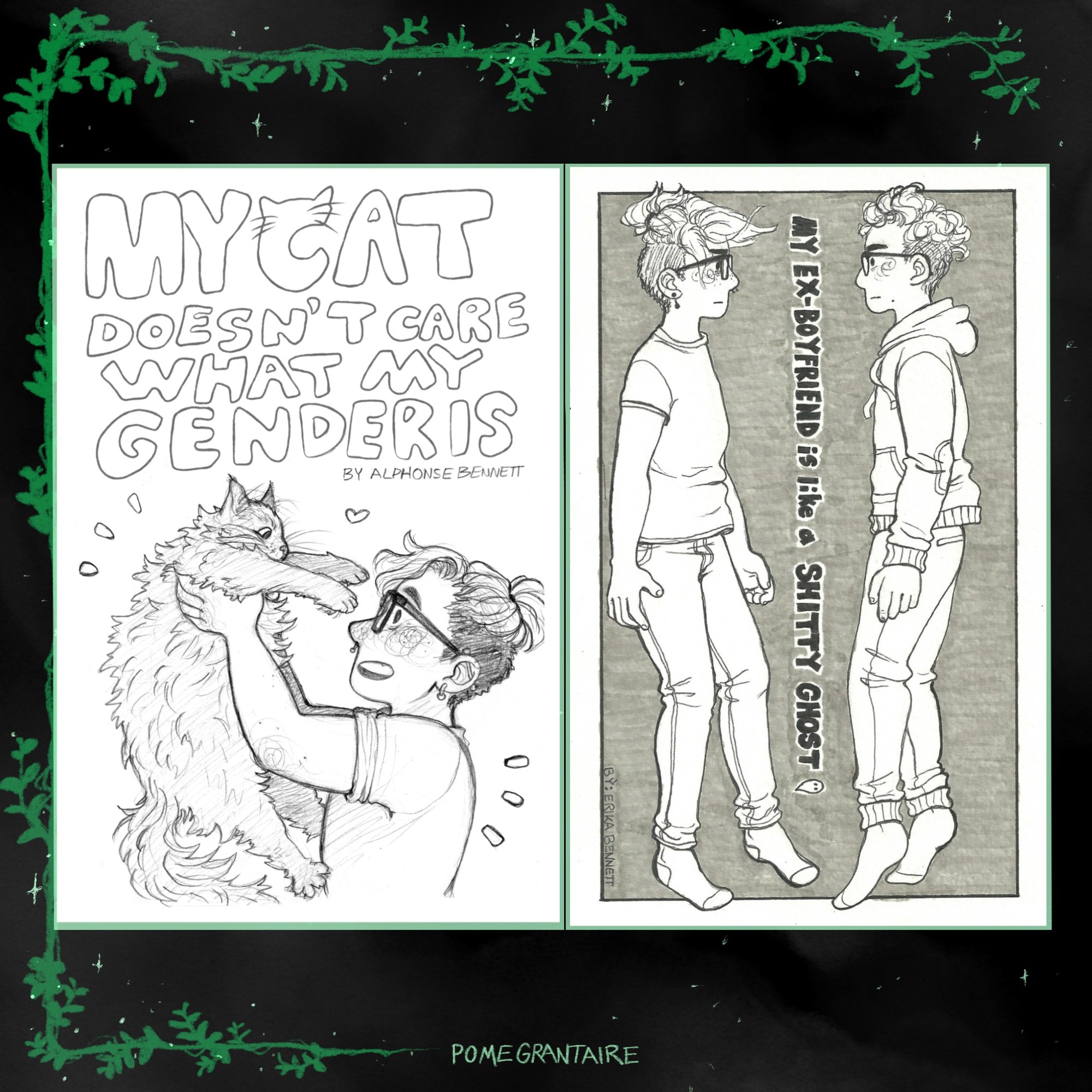 5.5" x 8.5" 12 page black & white about my personal experience with gender and being a trans/non-binary individual. Originally drawn in 2017, l go over the many aspects of my life and how my non-binary-ness ties into it. I like to think it's pretty funny while also covering some more serious aspects. And yes, there are drawings of my cat Viktor!